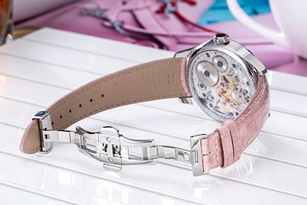 | Strap | Pale Pink leather, 22.00 mm, folding clasp |