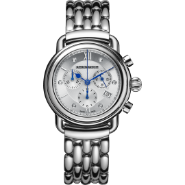 | Dial | Matt silver and fine satin in the centre, 3 counters, 6 diamonds brillants VS1 Ø 1.00, 0.014 ct, Roman indexes |
